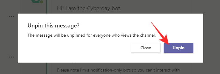 Provide confirmation for your action by clicking ‘Unpin’ again.