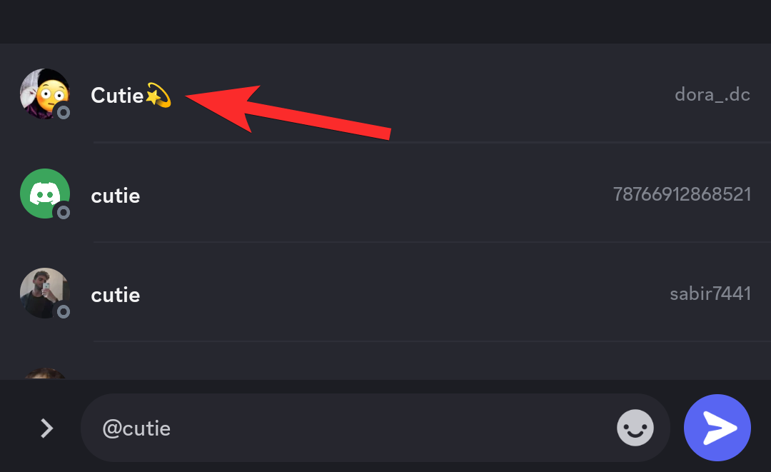 Step 4: Tap and select the user from the list above your ping if you’re pinging a user that has a similar name to other server members.