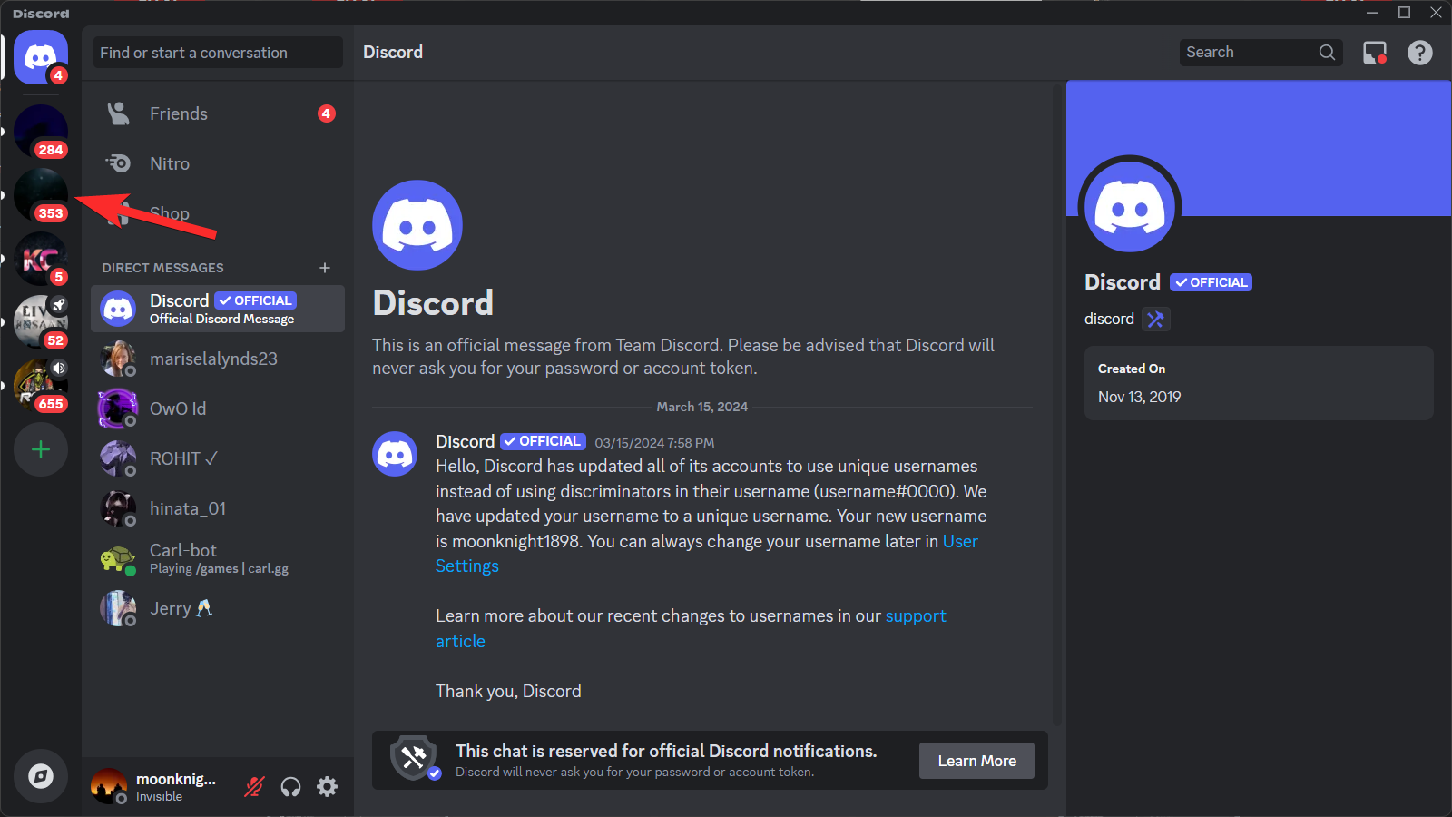 Step 1: Open Discord (discord.com) on the web on your browser or open the desktop app, depending on your preferred method, and log in to your account if needed.