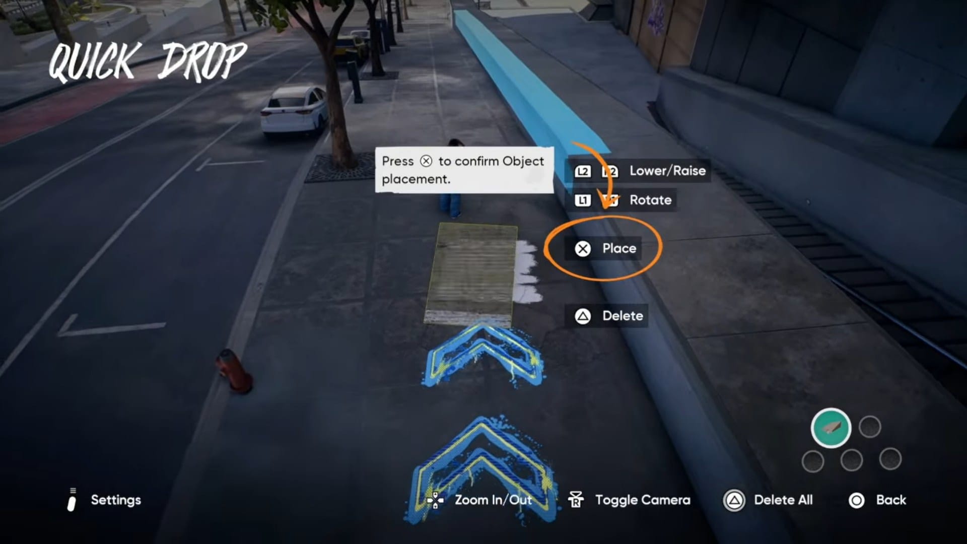 | PlayStation / PC (controller) | Right on D-Pad | X to Add / place | Hold Right on D-Pad for radial | Press L-stick to interact |