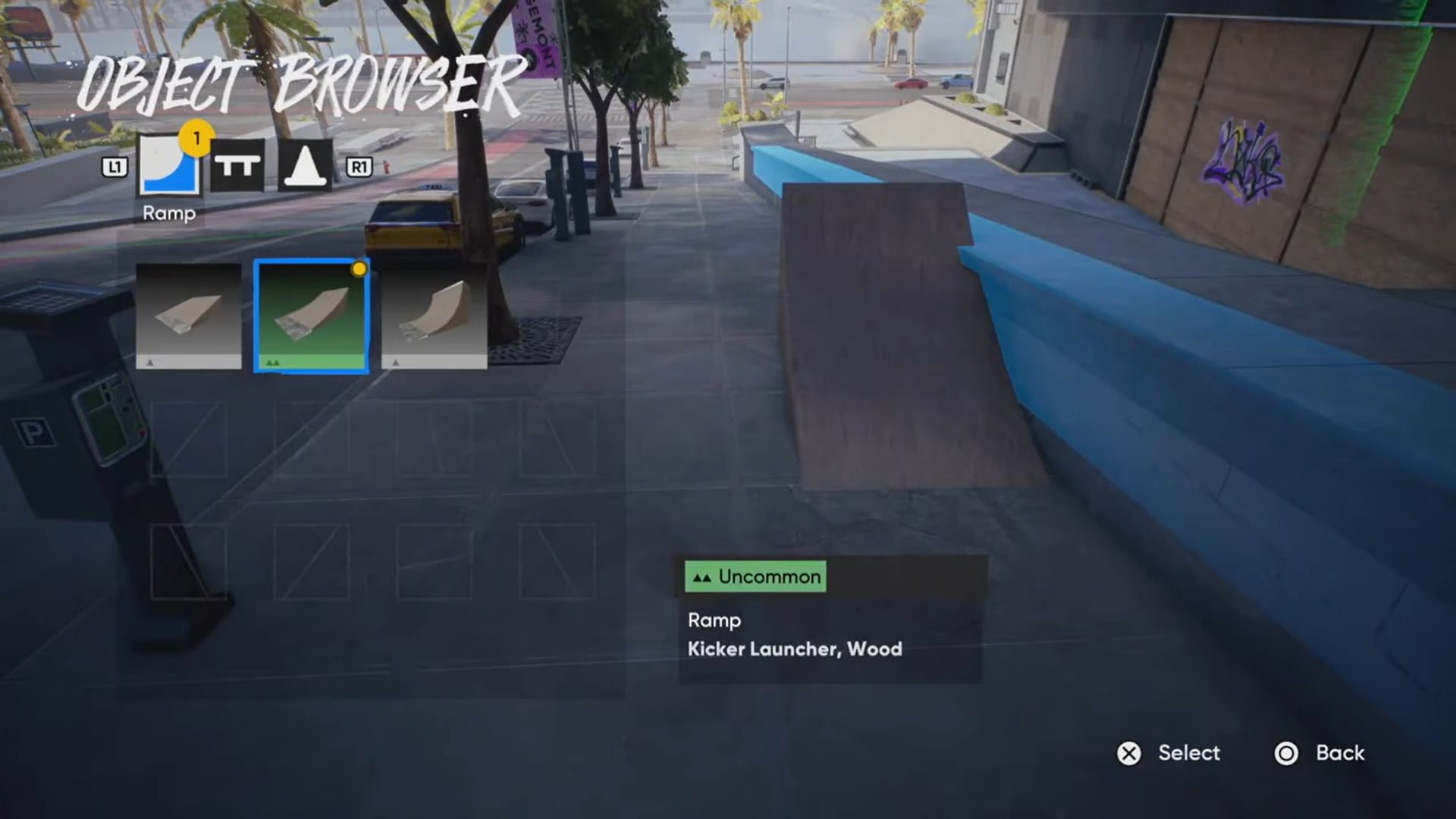 Open the park or prop editor mode and select the kicker ramp from the available objects.