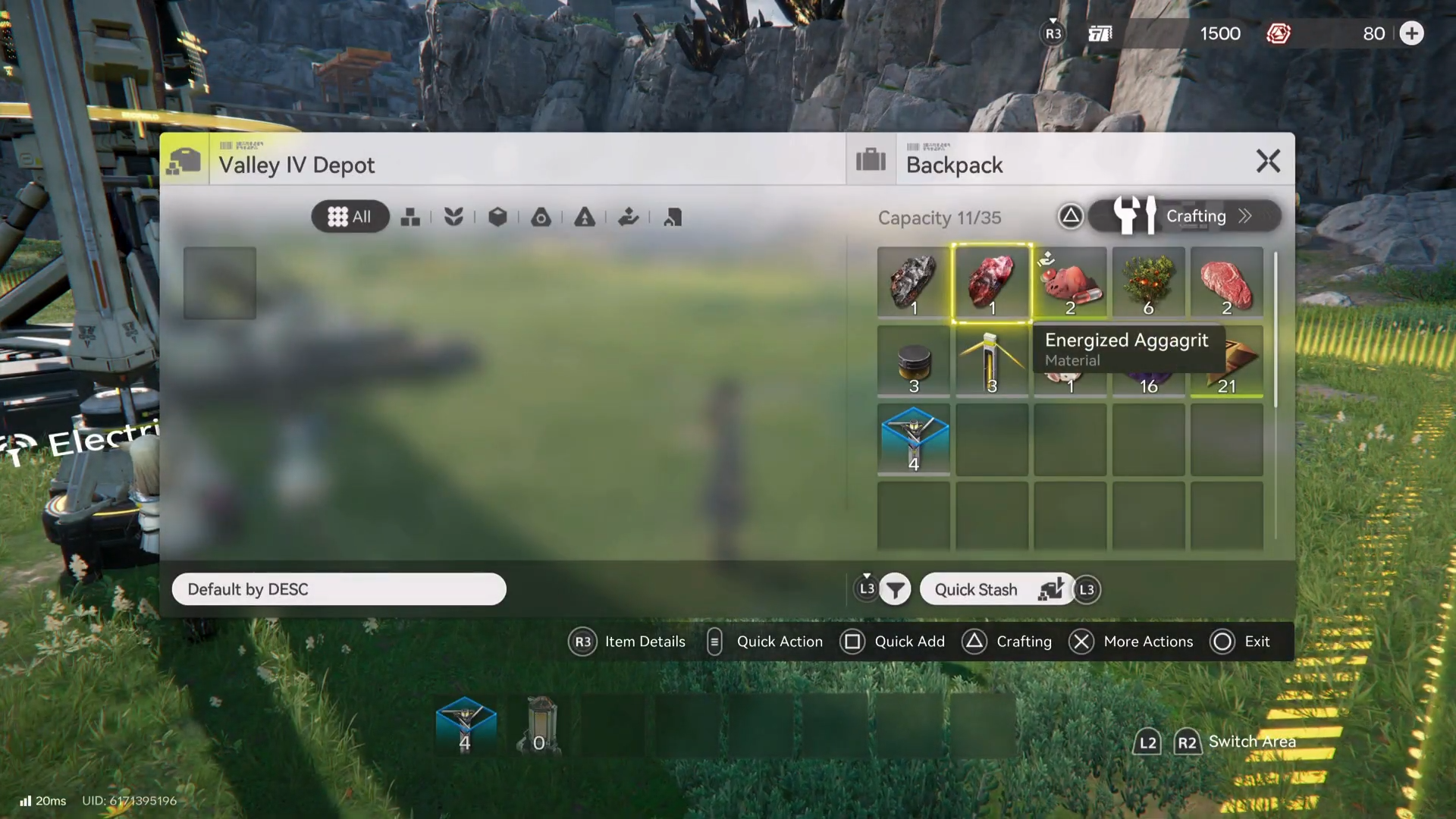 Exit the Backpack and bring up/view the hotbar in gameplay (the video demonstrates using L1 on controller).