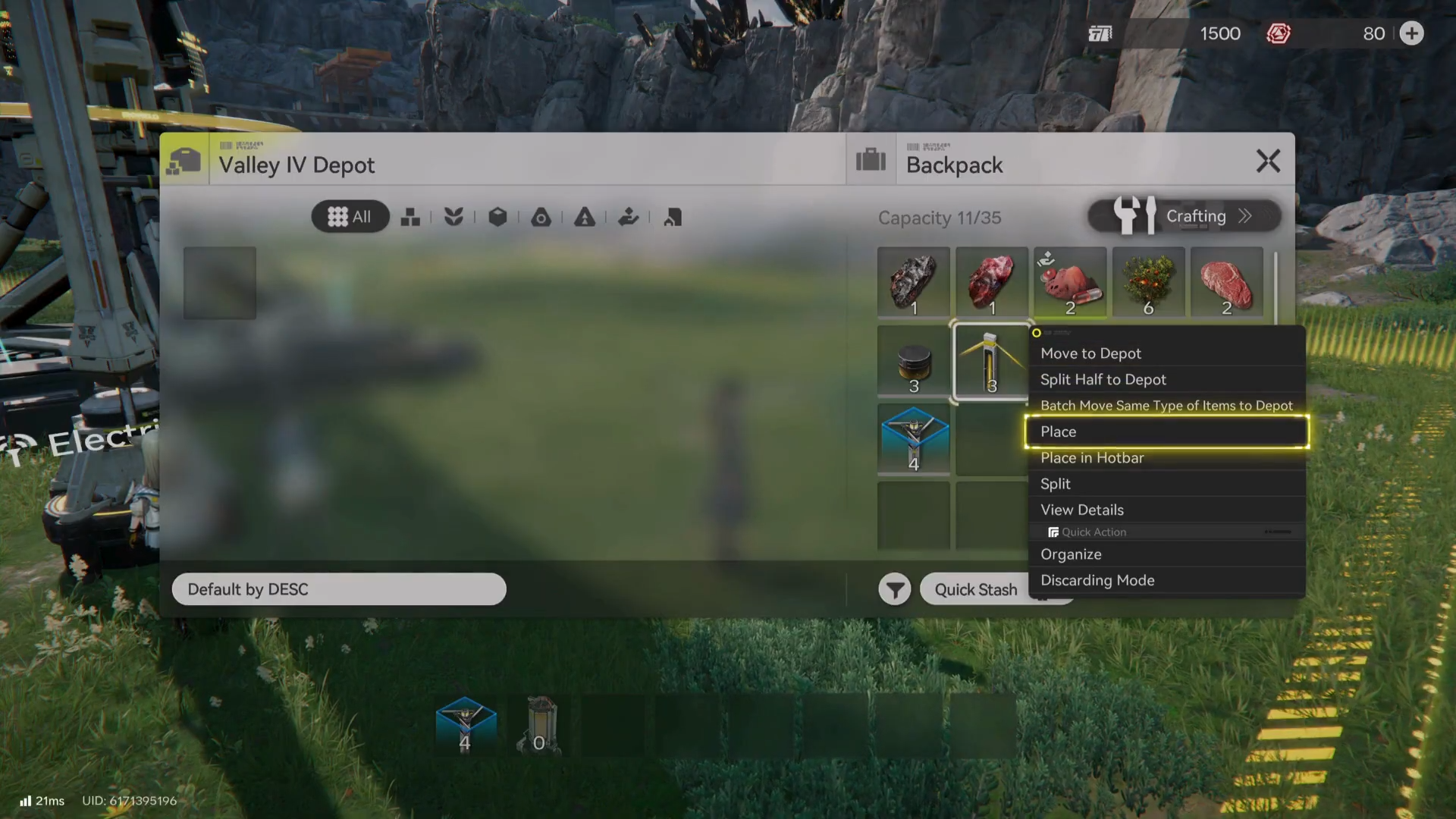 If the “Place in hotbar” option doesn’t appear, it may be because the selected item isn’t a hotbar-eligible item (some games only allow consumables/tools/buildables). Also, some mission steps specifically expect you to hotbar a required structure (for example, a relay/tower-type item) before you can place it efficiently, so make sure you’re selecting the correct mission item.