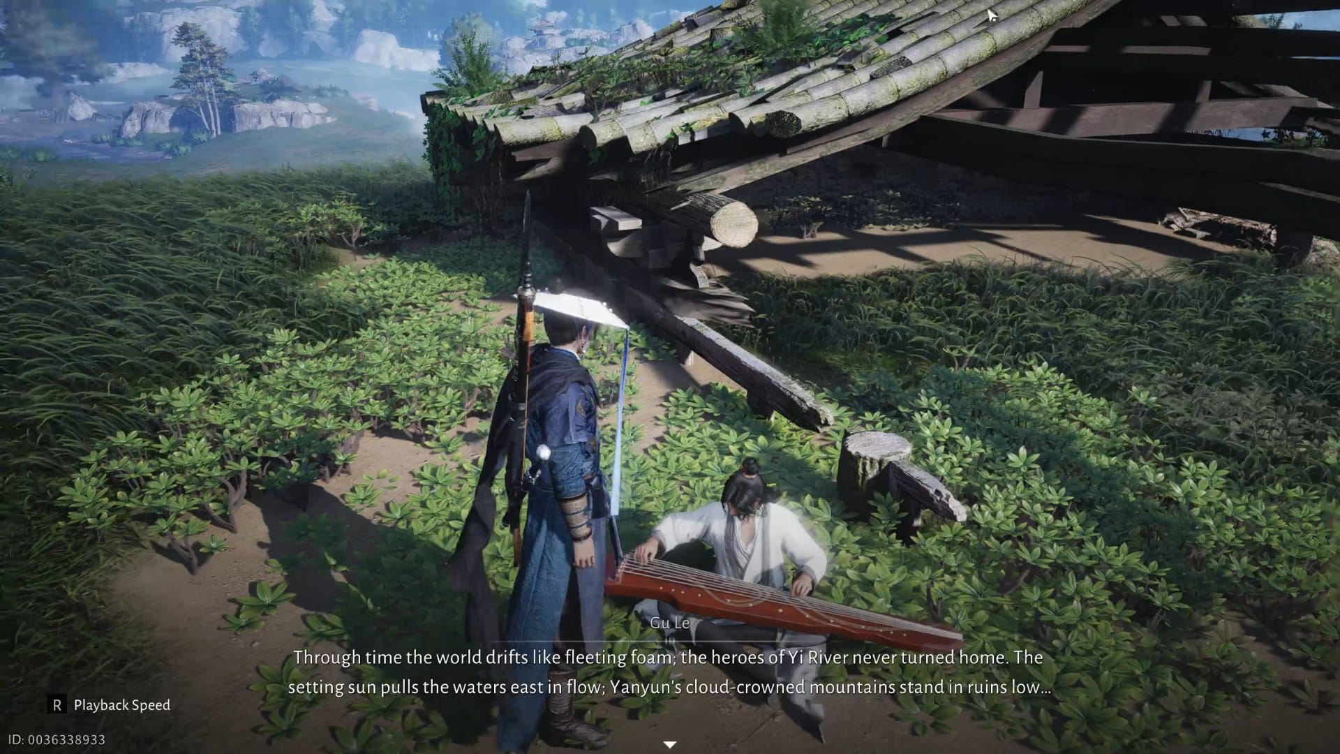 At the top of the hill, next to a small abandoned hut, will be the Guqin player. His name is Gu Le.