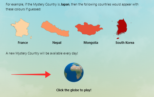 The colder your guesses, the paler the feedback color gets, and the closer you get to the correct location, the warmer the guesses and deeper the feedback color. For Japan, countries like South Korea and Russia would get burgundy colored highlights if you enter them as the guess.