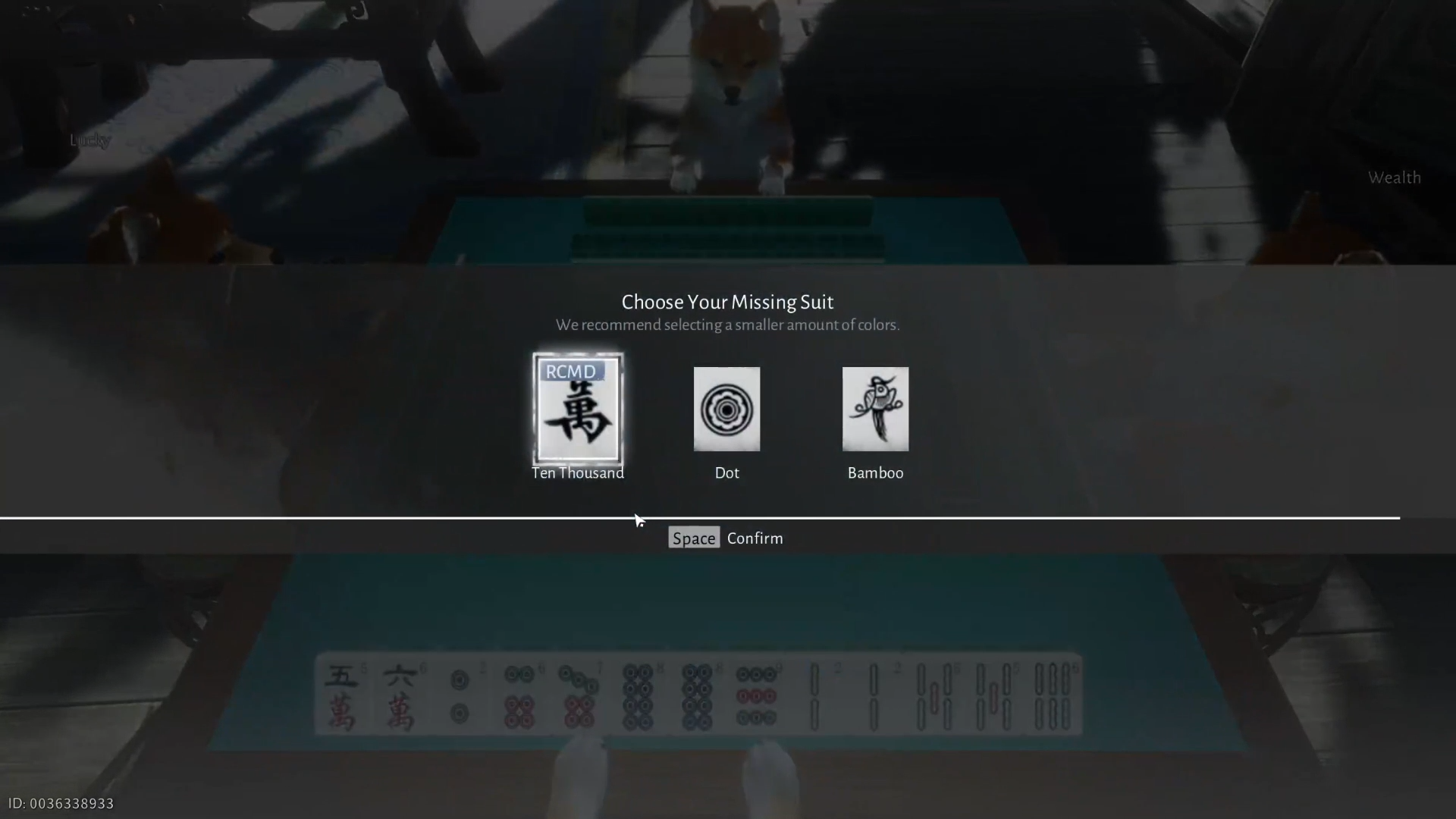 At the start, each player must declare one suit (Dots, Bamboo, or Ten Thousand) as the Missing Suit.