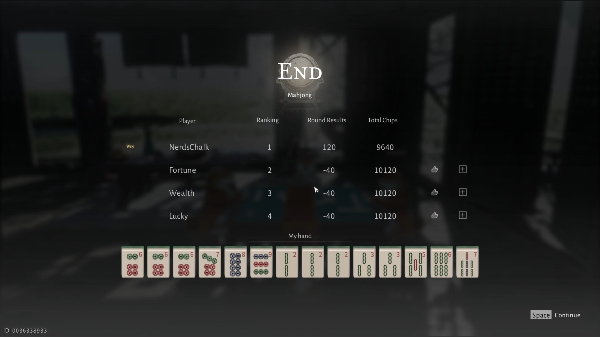The game is a typical cards game where instead of cards you have tiles. There are three suits - Bamboo (lines), Ten Thousand (characters) and Dot.