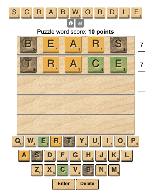 It depends. While the addition of Scrabble makes ScrabWordle look a little easy, there’s more to it. Relative to Wordle, you’re getting lesser attempts to start with on ScrabWordle – 5 compared to Wordle’s 6. Yes, the puzzle word score helps players narrow down their guesses but that’s what makes it even more playable.