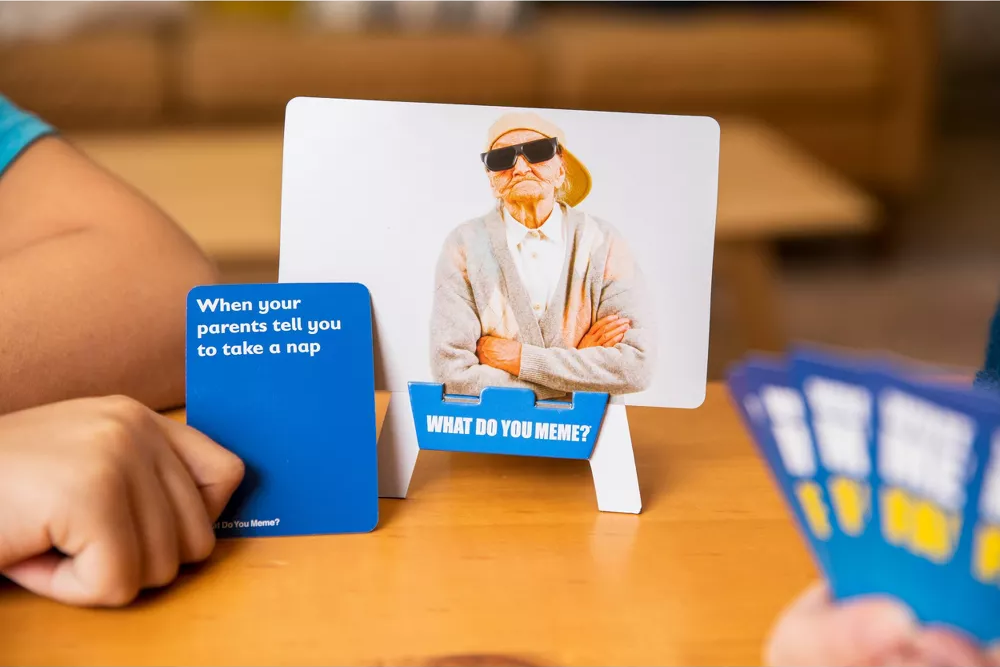 What Do You Meme? Family Edition is a hilarious party game that combines the idea of board games with the humor of internet memes to create a fun evening for your family. The aim of the game is to create hilarious memes with different photos and captions where you compete to see whose meme is the funniest.