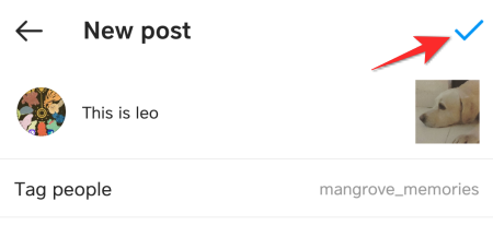 Now tap the arrow on the top right and arrive at the final post creation page.