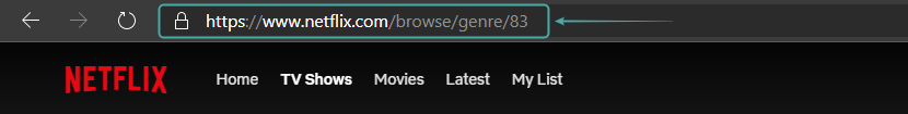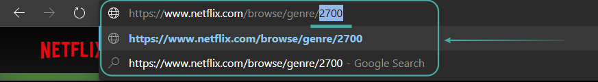 You should now see a URL like this ‘https://www.netflix.com/browse/genre/xxxxx‘ in your browser’s URL bar.