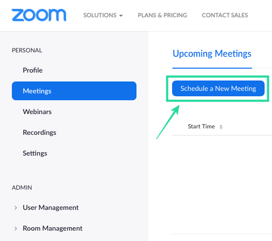 Step 2: Click on the ‘Schedule a New Meeting’ button under Upcoming Meetings.