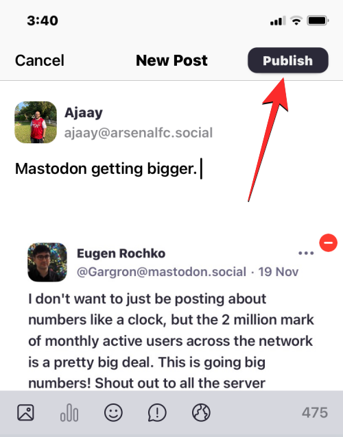 When your post is ready, tap on Publish at the top right corner.