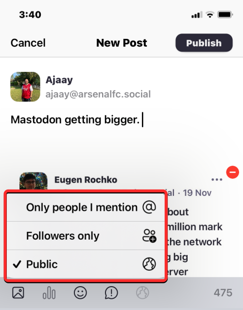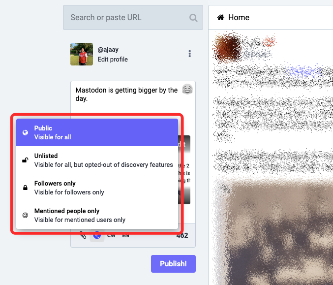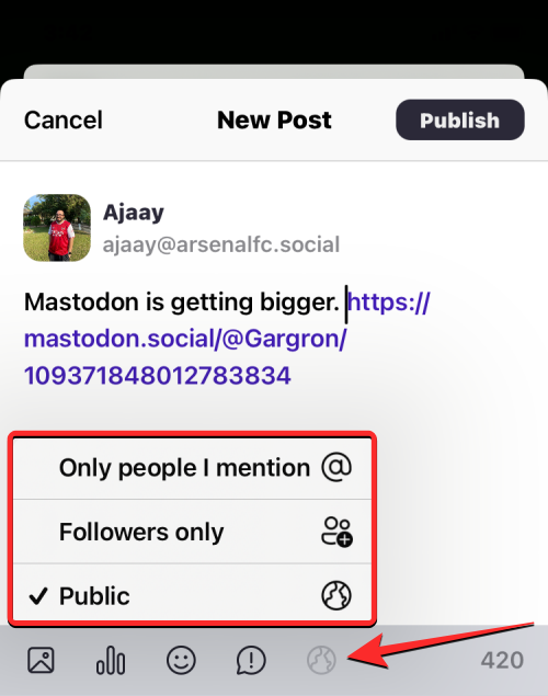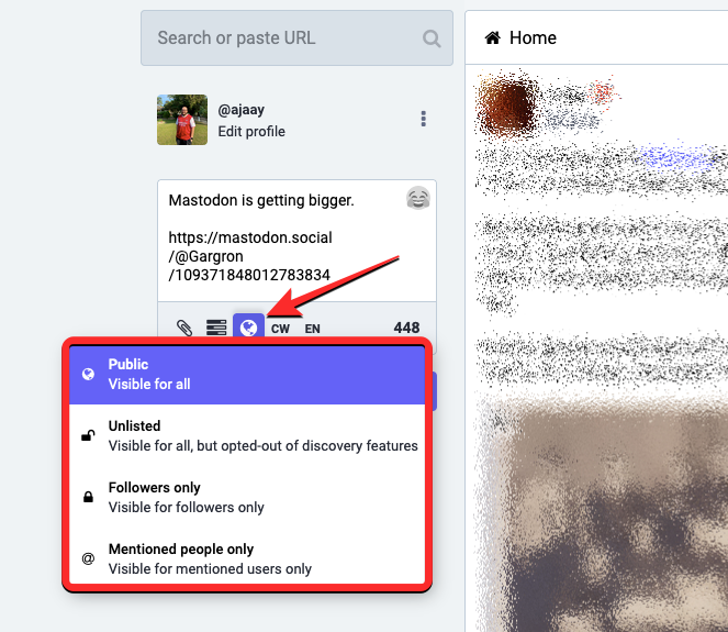 This is an important step as you can leave this conversation to all of Mastodon, or limit its visibility to your followers, people in your instance, or just the people you mention inside this post.