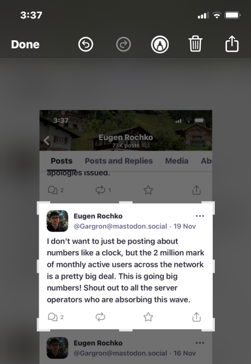 If you want the original post you want to quote when sharing it from your own account, taking a screenshot is the best way forward. You can take screenshots of any post on Mastodon, both on the app or its web client using the appropriate steps required to take a screenshot on your device.