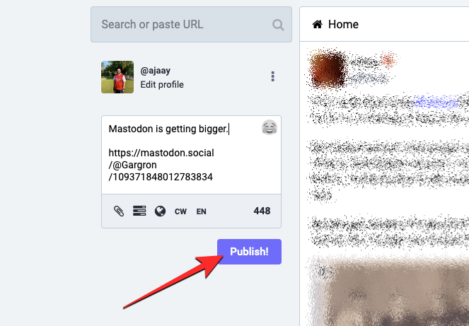 To share a post on Mastodon as a quote, take a screenshot of it on your computer. For best results, we’ll suggest you crop the screenshot to only show the post you wanted to quote since Mastodon doesn’t offer an in-built tool to crop the images you upload to it.