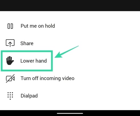 If you want to lower your hand, tap the 3-dot button from the bottom and select ‘Lower hand’.