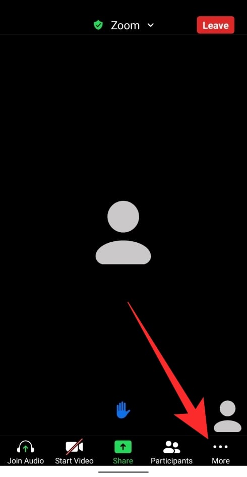 Step 2: To raise your hand to speak up, tap on the ‘More’ button from the meeting controls at the bottom right corner of the screen and then select the ‘Raise Hand’ option from the popup menu.
