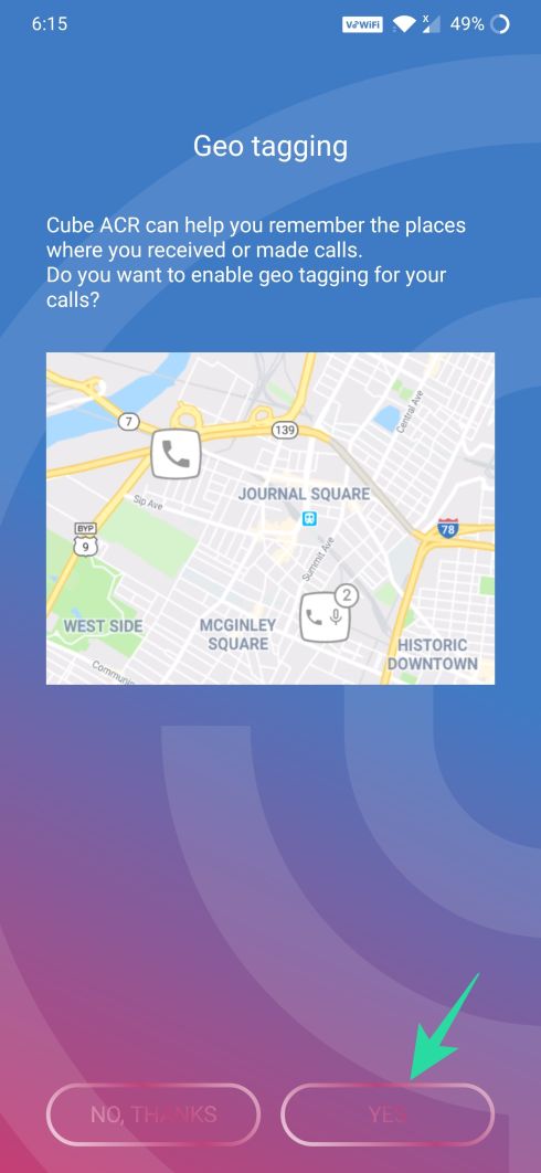 Step 10: Now, if you wish to add the Geo-tagging feature to your calls, tap Yes or tap No, Thanks.