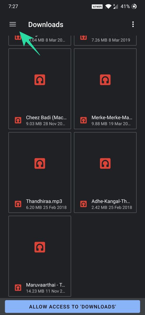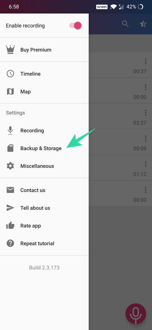 Step 8: Now tap the hamburger menu icon from the top left and select the internal/external memory where you wish to save the recordings.
