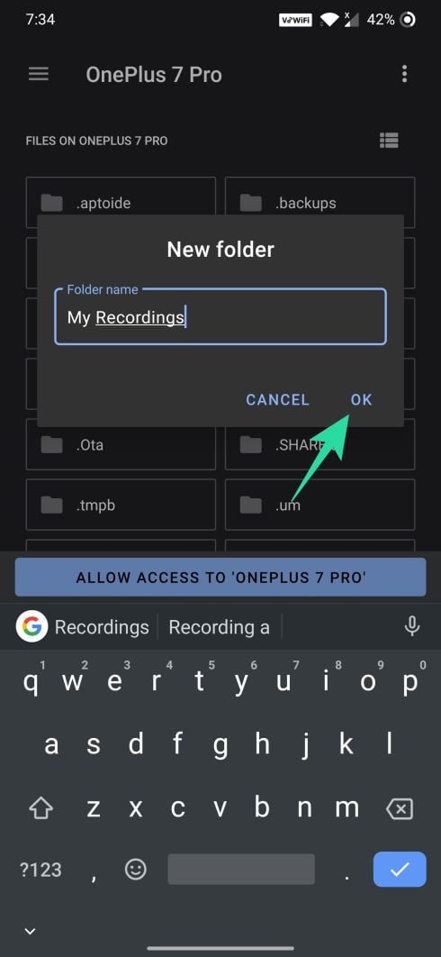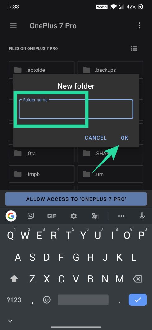 Step 10: Enter the name for the new folder and then tap on OK.