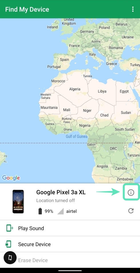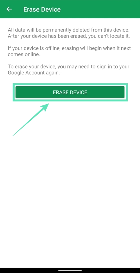 • Erase your device’s data: This will act as a remote way of factory-resetting your device which will erase all the apps, photos, videos, music, and settings of your phone. Tap on Erase Device and after a warning prompt, tap on Erase Device again.