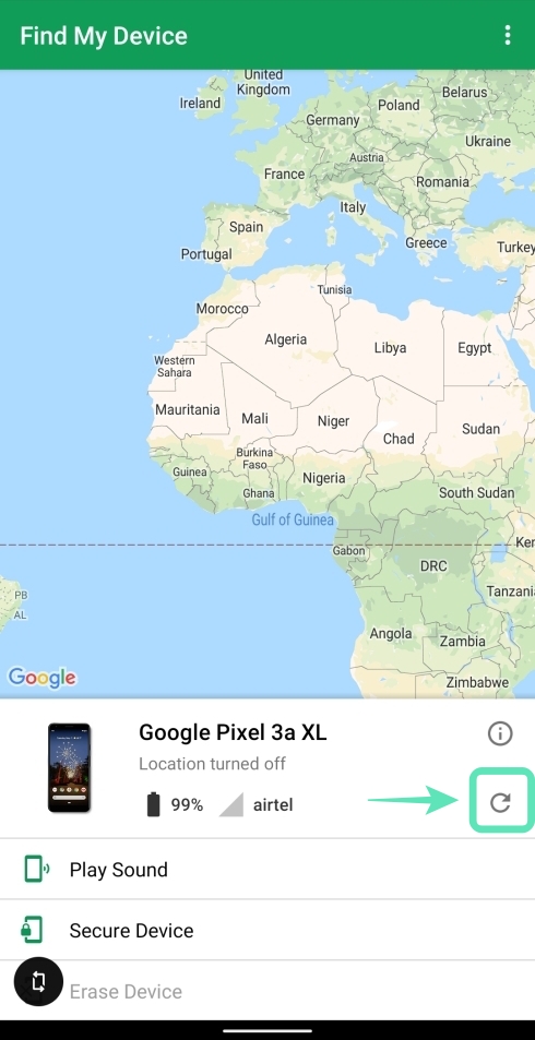 • Check the phone’s locationYou can check the status of your phone by tapping on the refresh button on the bottom right.
