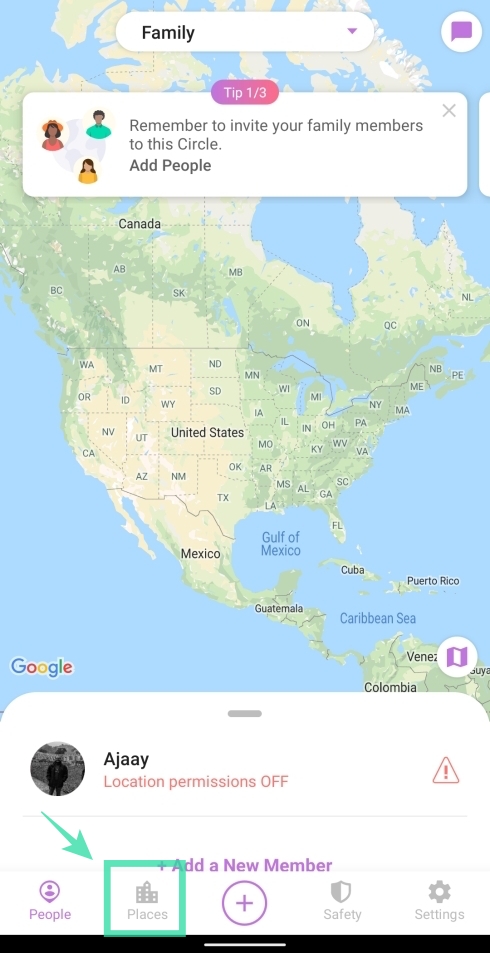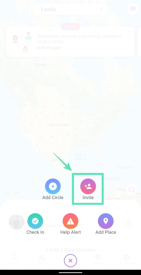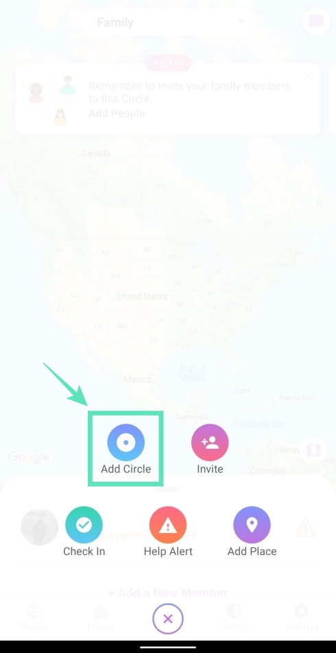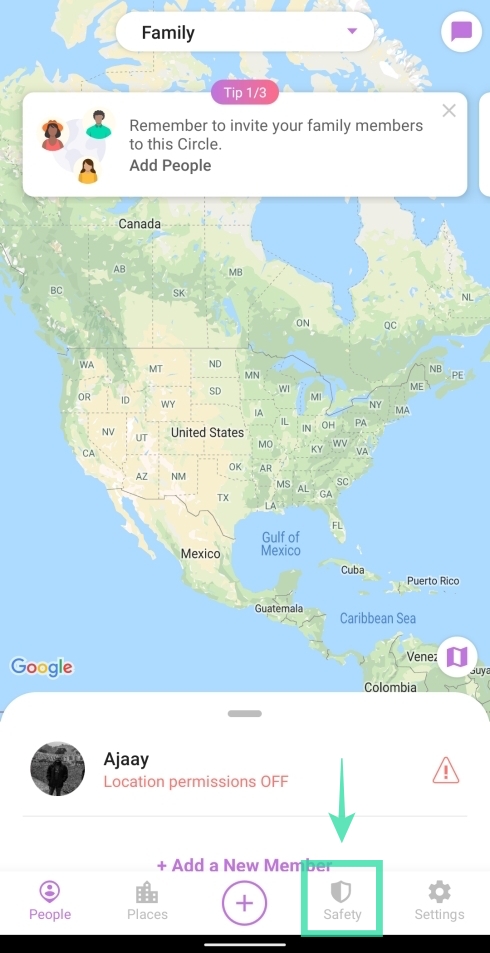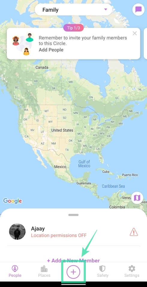 In the next screen, you can view a map showing the locations of the members in your circle.
