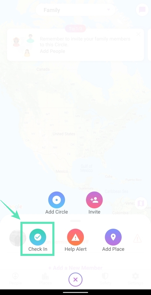 • Check-in to a place: Tap on the ‘+’ icon and hit Check In to notify other members in your circle about your current whereabouts.