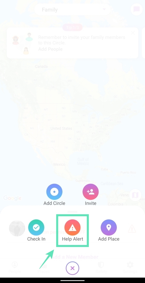 Alternatively, you can access this by tapping on ‘+’ icon and hitting Help Alert.