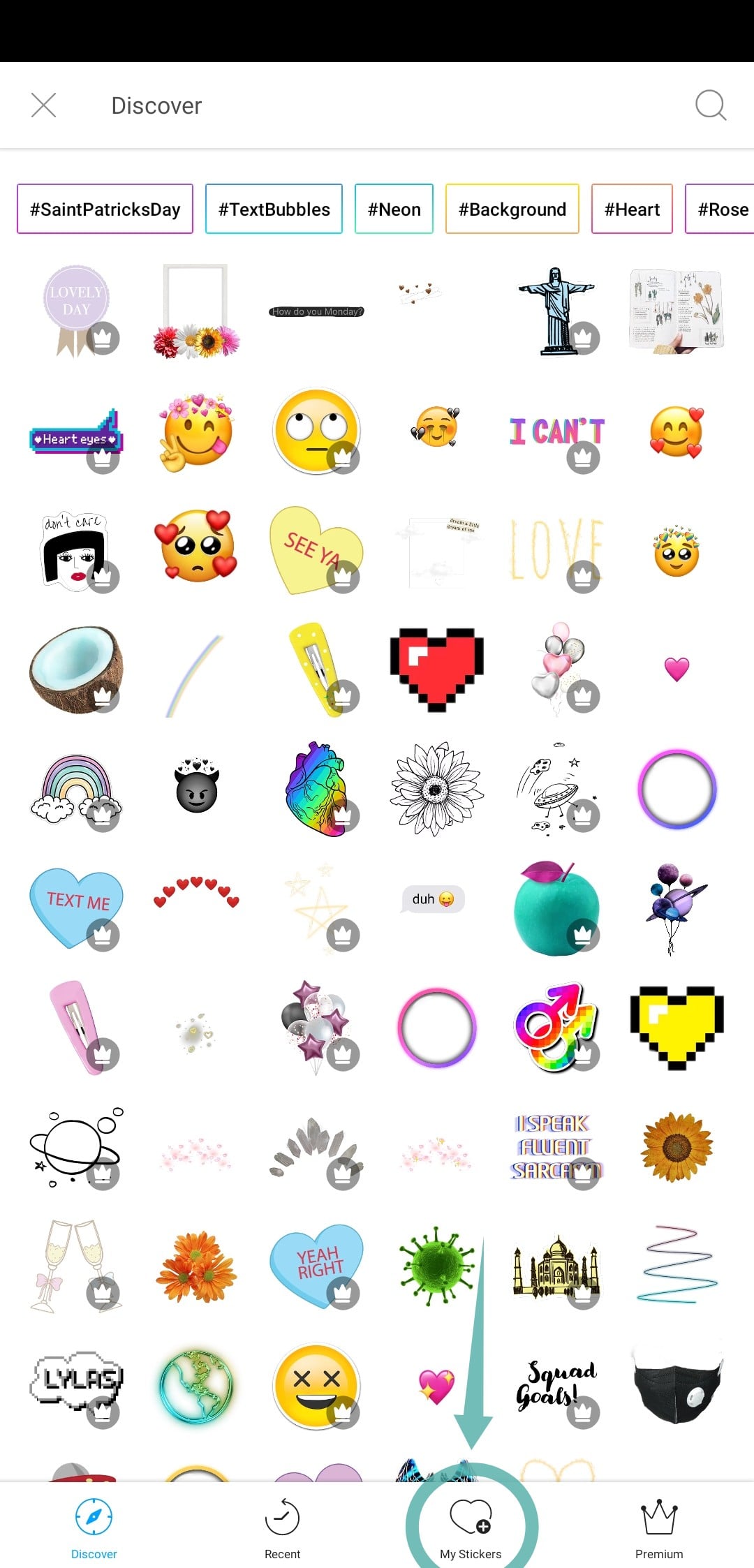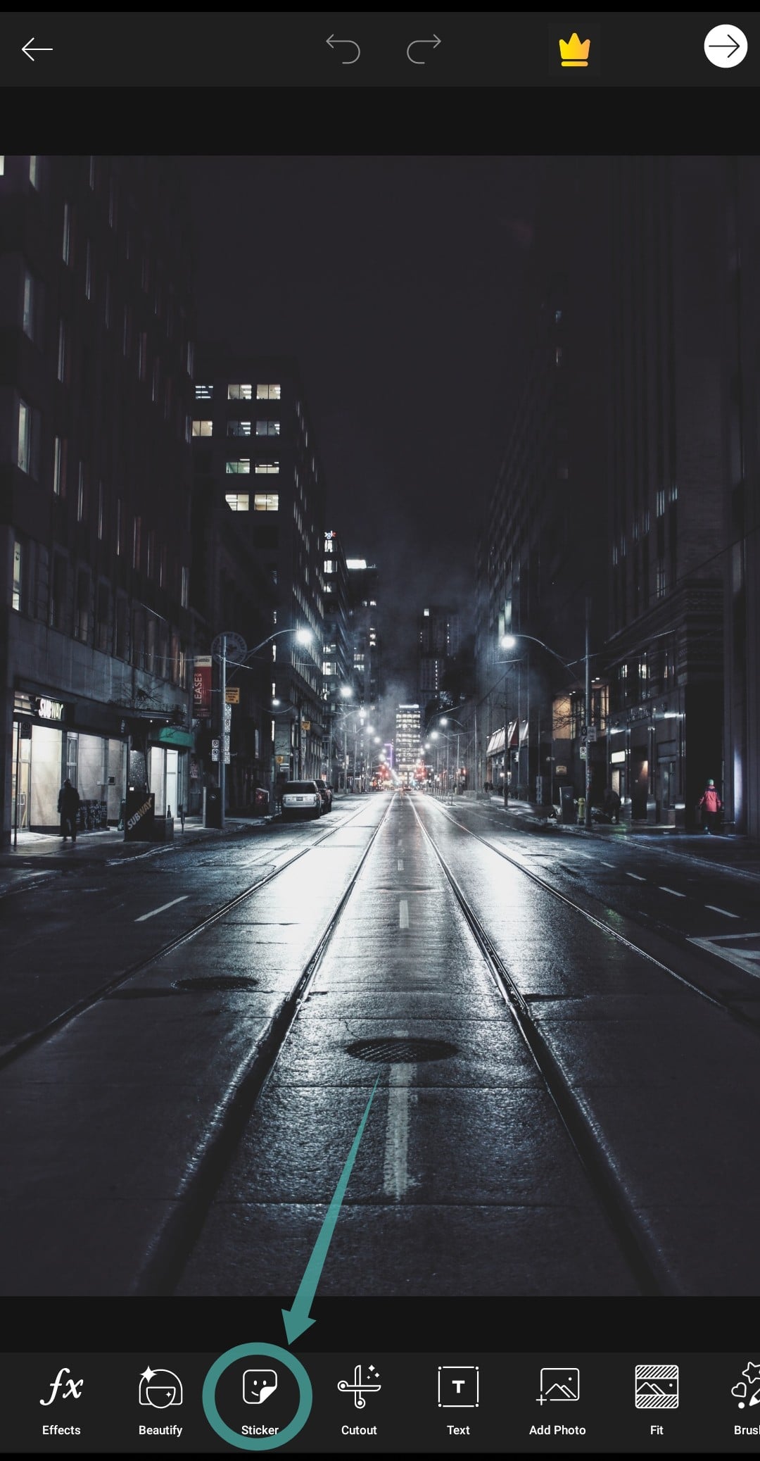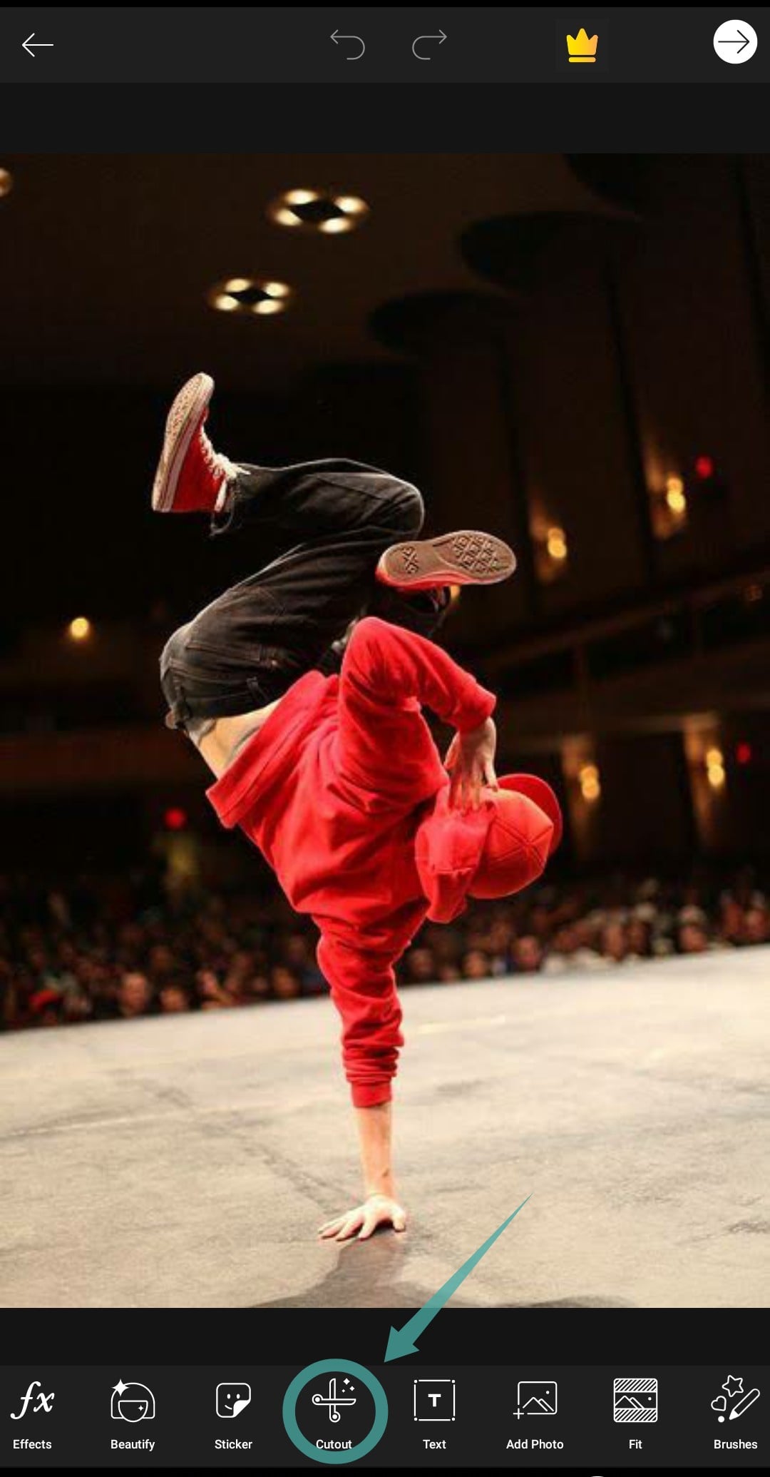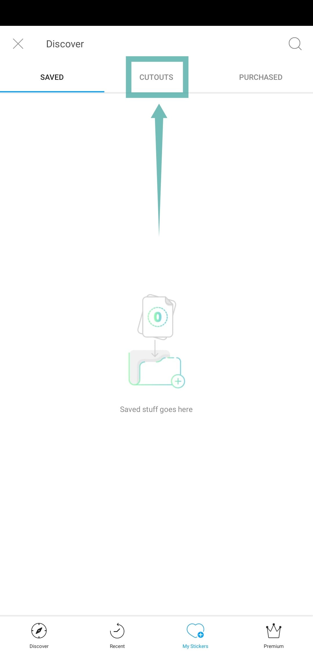 Step 11: Now scroll the bottom pane until you find an option titled ‘stickers’. Tap on it, and select ‘my stickers’. You will now see three tabs on the top of your screen, tap on the one that says ‘cutouts’. You can now select the cutout that we created earlier.