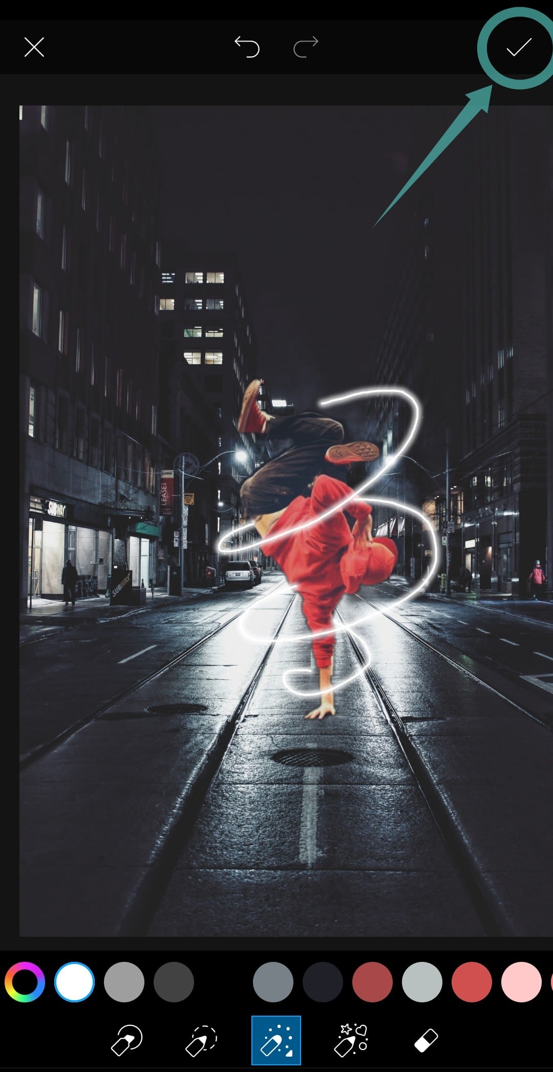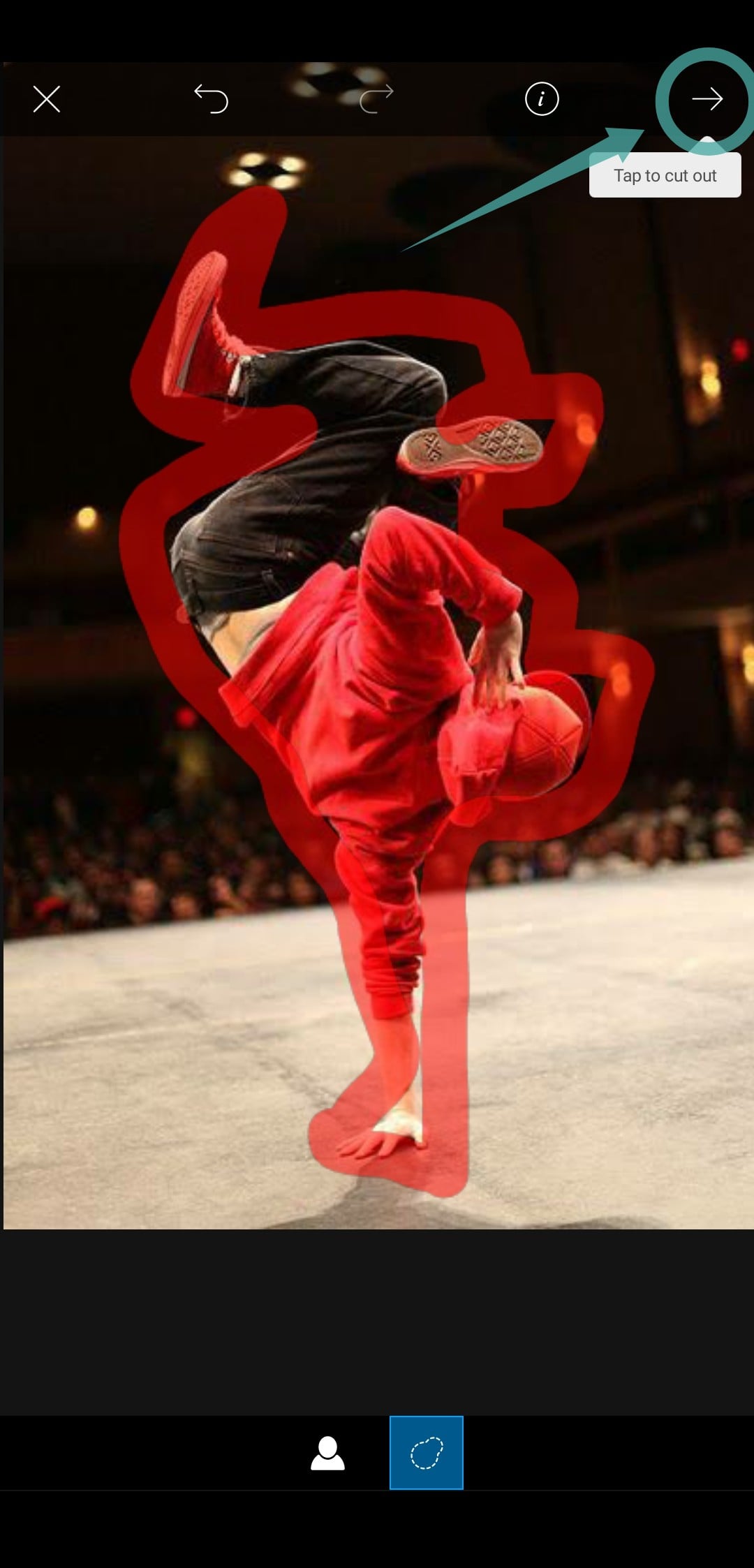 Step 6: Now start drawing on all the elements of your photo that you want to keep in the image. Once you are done, tap on the ‘right arrow’ in the top right corner of your screen.