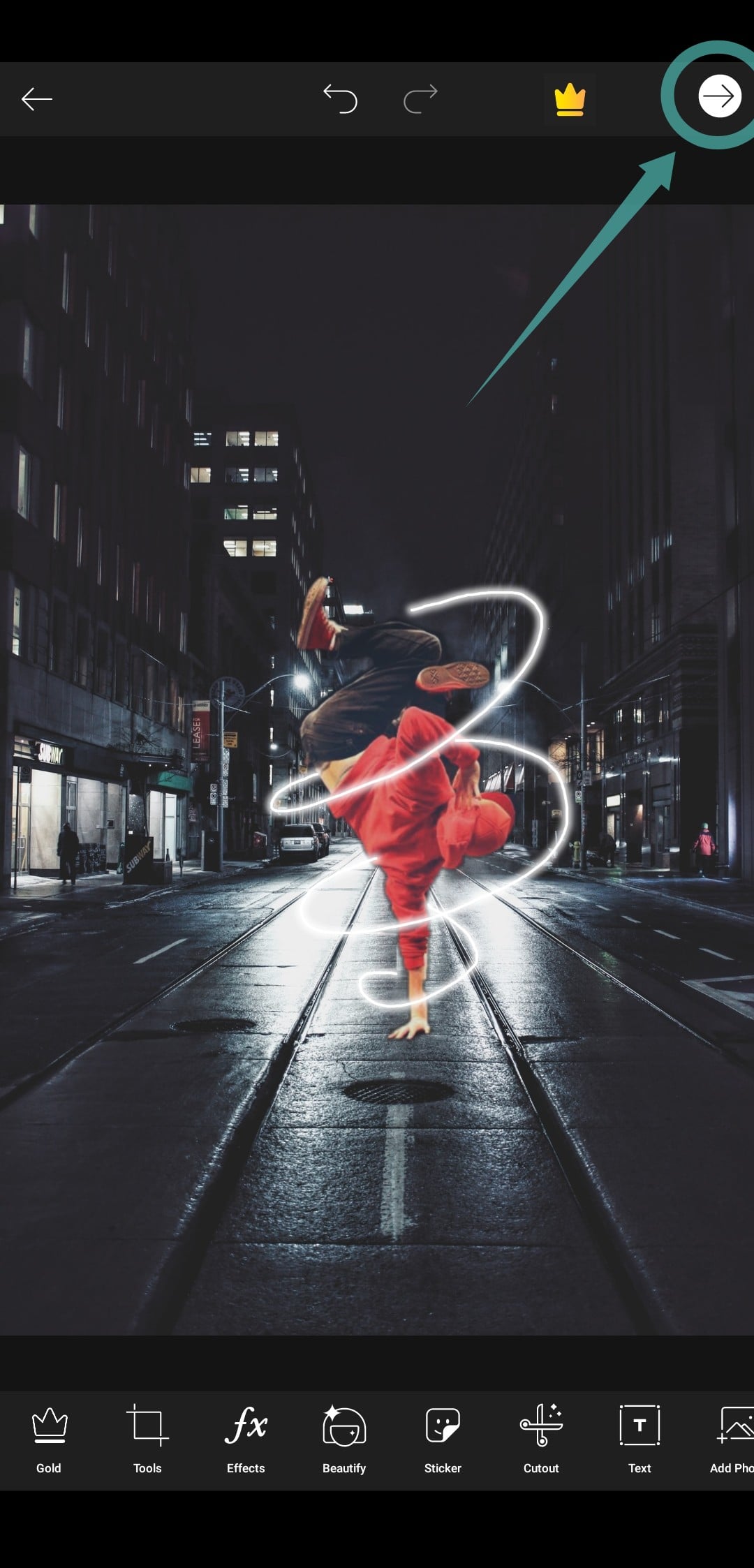 Step 16: Tap on the ‘right arrow’ in the top right-hand corner of your screen to share/save your image.