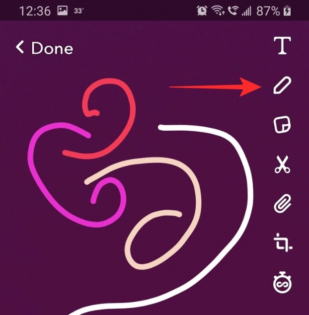 To remove anything that you drew on the snap, you need to use the undo button. Tap the ‘Draw’ button in the side panel, then tap the ‘Undo’ button. Keep tapping the undo button until all the drawings have been erased.
