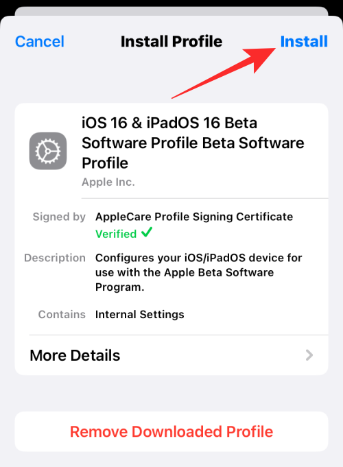 When the profile loads up on the next screen, tap on Install at the top right corner to load it on your phone.
