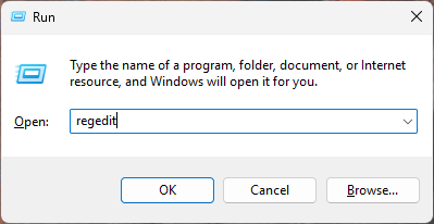 Step 1: Open the Registry Editor. You can do so from the Start menu or with the regedit command in the RUN dialog box (Win+R).