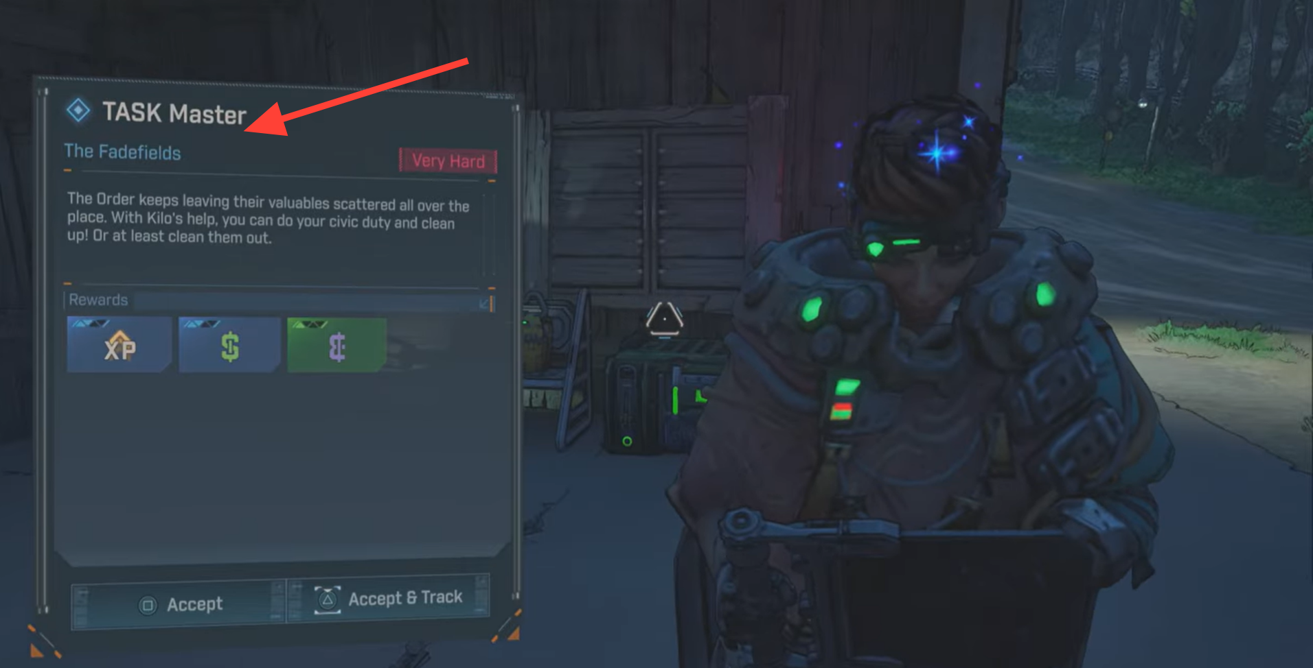 Accept the TASK Master side mission from Kilo at The Launchpad.