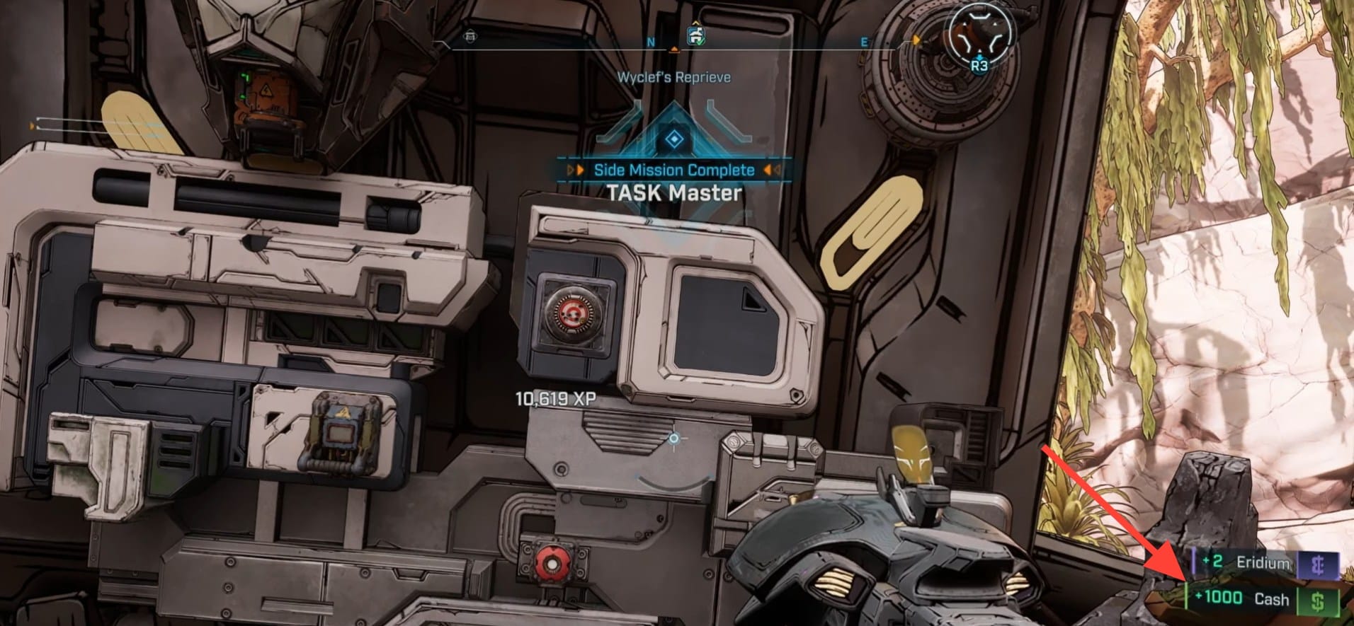 Once the pod opens, access the chest inside to claim random weapon rewards and mission rewards such as EXP, cash, and Eridium.