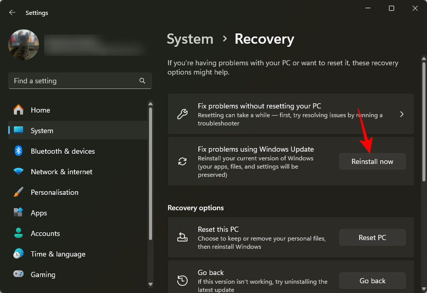 - Windows 11 also lets users reinstall the OS without deleting anything from Settings > System > Recover > Reinstall now.