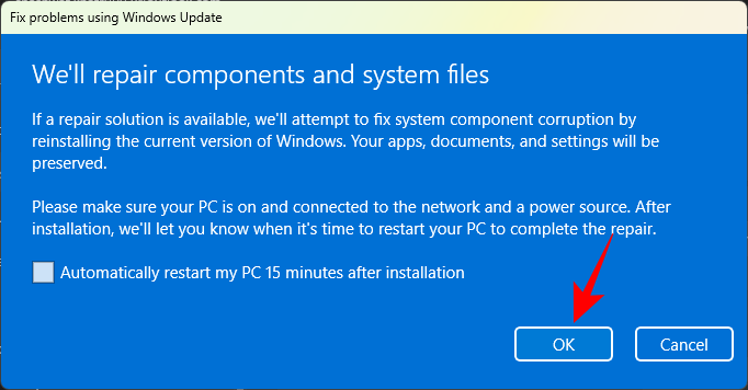 - Click on Reinstall now next to ‘Fix problems using Windows update’.