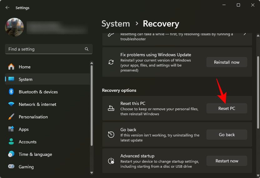 - Press ‘Windows + I’ on your keyboard to open the Settings app. Go to System > Recovery.