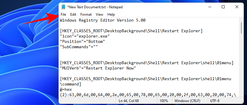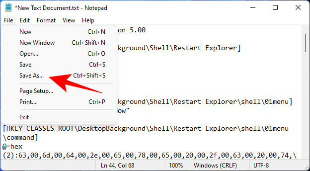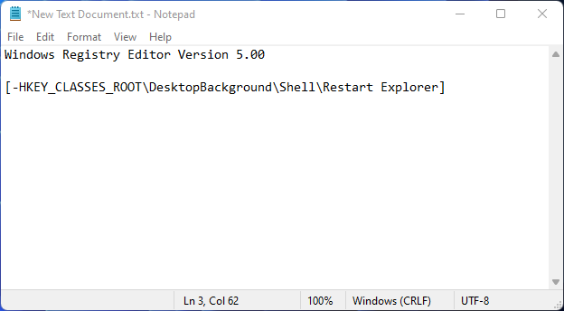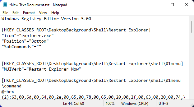 If the aforementioned methods seem too elaborate to you, you can add an option to restart Windows Explorer to the context menu for easier access. However, to do so, you’ll have to create a registry file specific to the task. Here’s how to go about it: