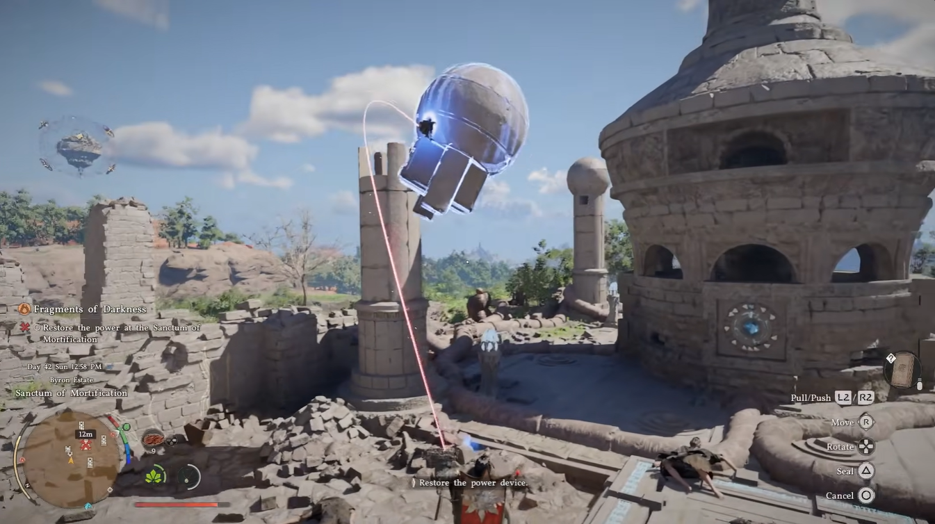 Right after entering the Sanctum of Mortification near the Crimson Wall, you’ll notice that the structure is dormant and lifeless. Your goal is to reactivate it by restoring its core power system, which is split into two separate components hidden within the ruins. The process blends exploration with environmental puzzle-solving, requiring you to carefully observe your surroundings and use abilities like Axiom Force and Focus in Crimson Desert.