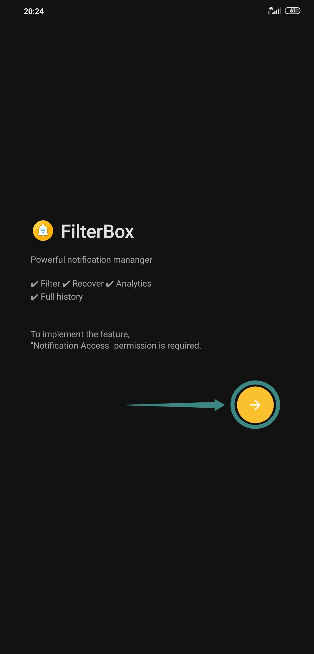Step 3: You will now see the home screen where Filterbox will start keeping a log of all the notifications received by you.