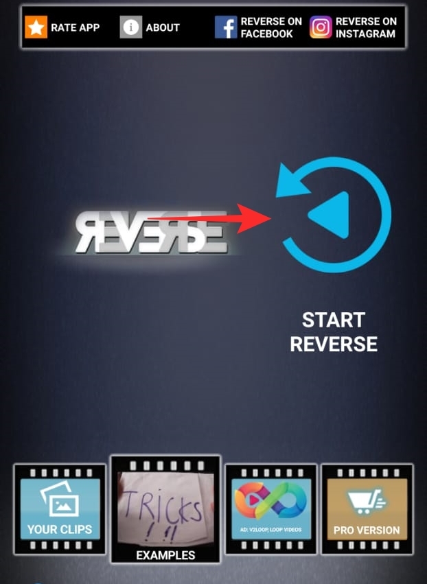 Select the video clip that you would like to reverse from your gallery. Tap ‘Start’ to reverse the clip.