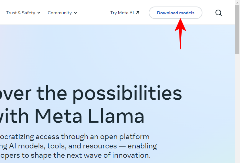 - Open Llama.Meta.com and click on Download models.