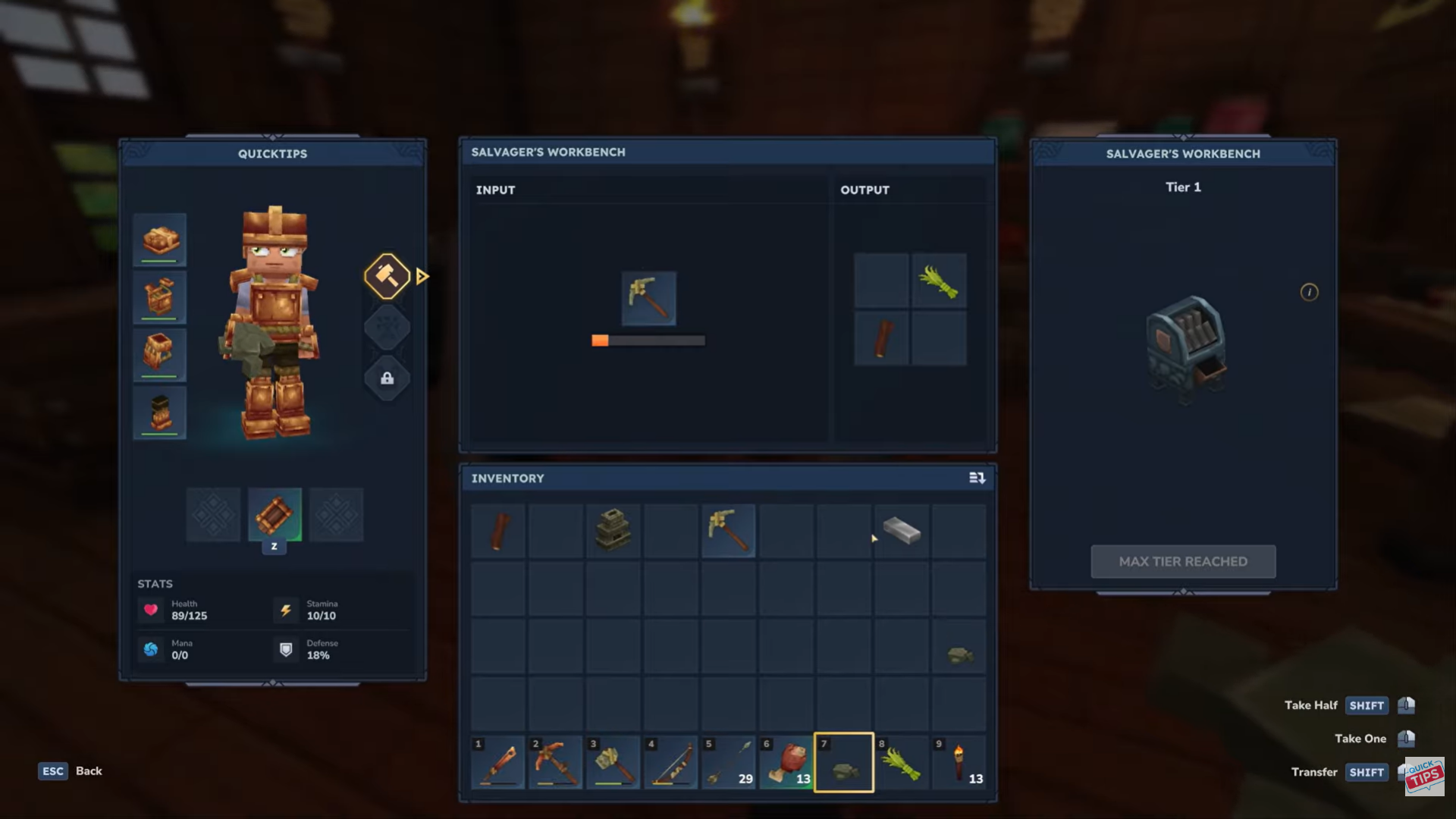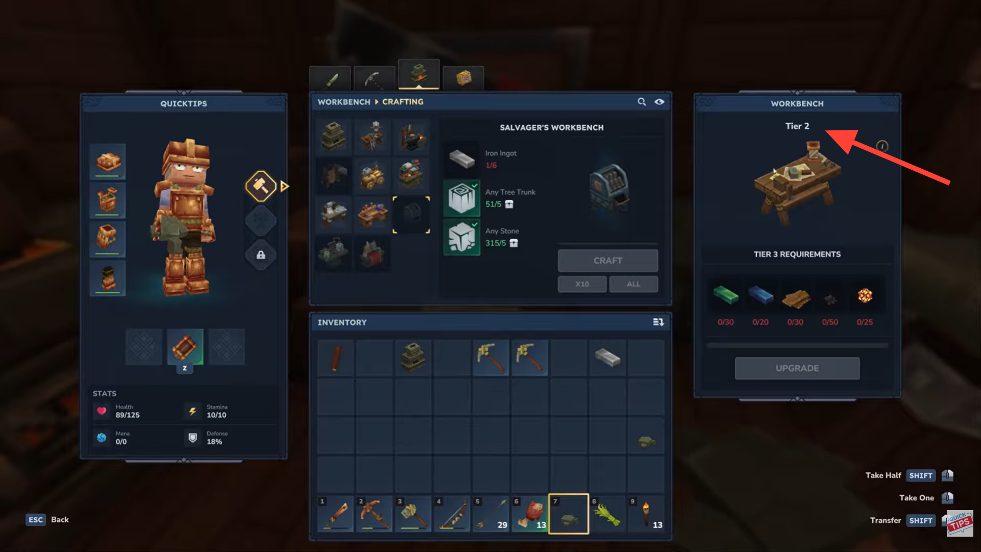 At your Tier 2 workbench, craft the Salvager’s Workbench using: