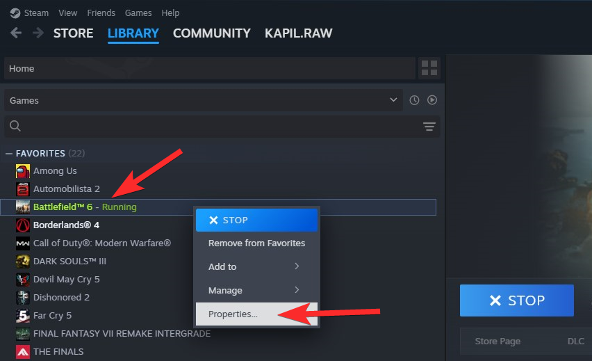 - In your Steam library, right-click on Battlefield 6 and select "Properties."
