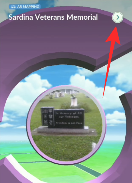 This will open the Pokéstop and you will be able to view the location’s Photo Disc. On this screen, tap on the right-arrow icon at the top right corner.