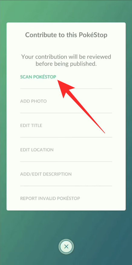 On the next screen, tap on the ‘Scan Pokéstop’ option.